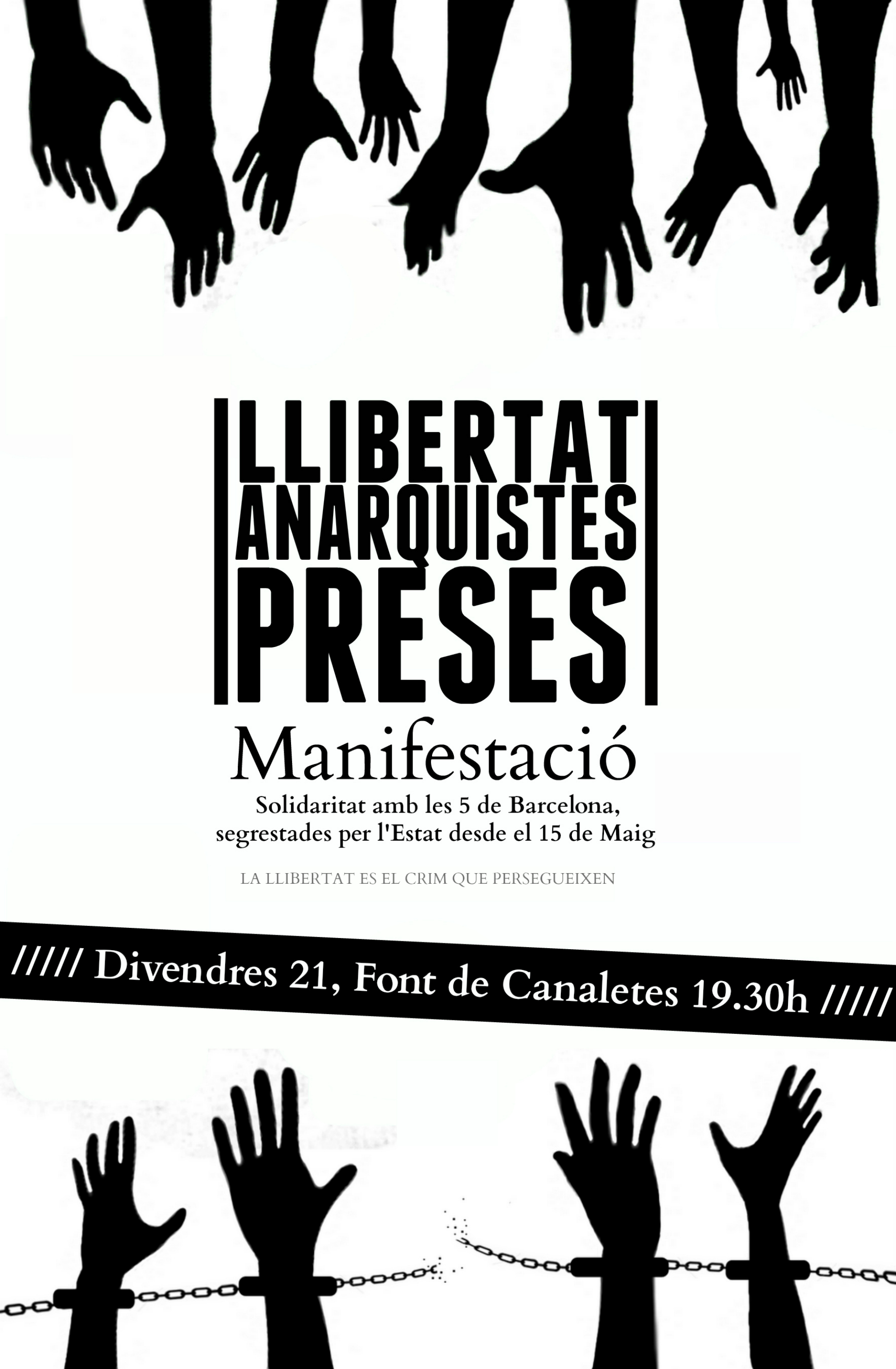Su caso no puede entenderse como algo aislado, sino como una pieza más en la estrategia represiva del Estado Español, que avanza a pasos agigantados hacia el autoritarismo del que es heredero. La detención de estos cinco anarquistas es un precedente que servirá para justificar nuevas persecuciones indiscriminadas, algo que ningún ciudadano de este país debería permitir.